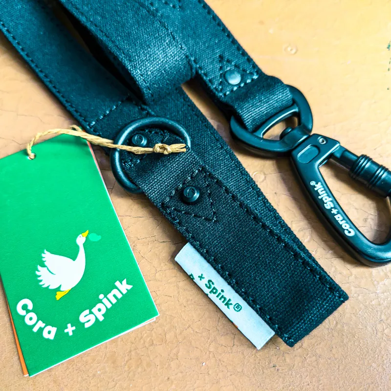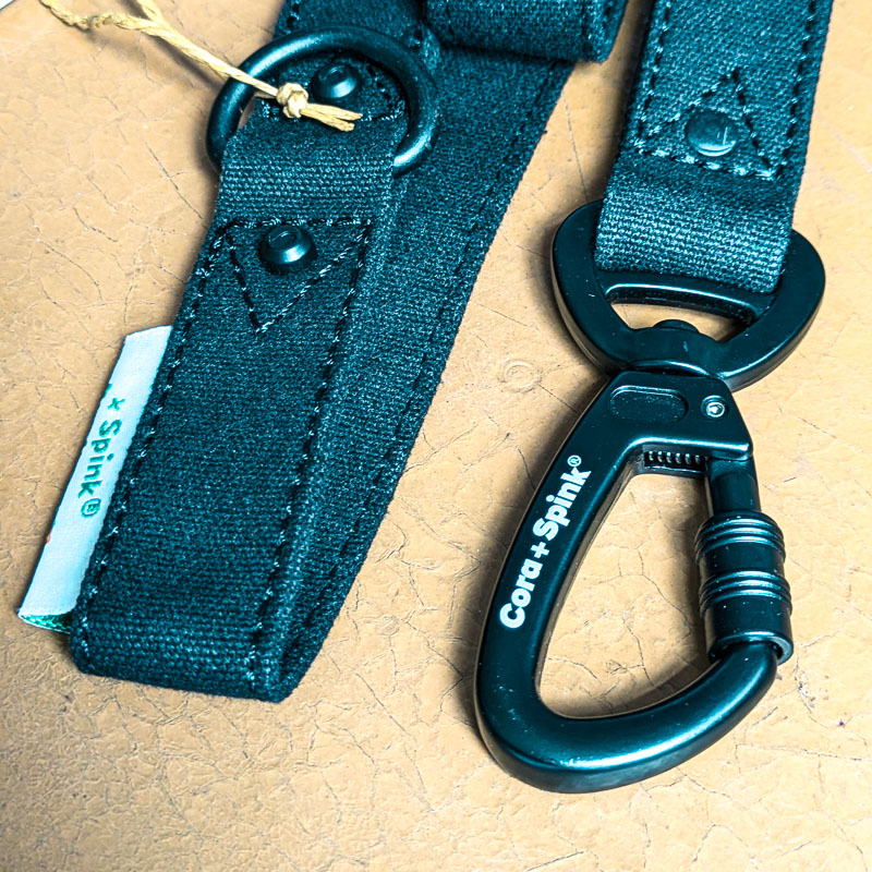 As always, it’s made from our 100% natural plant-based cotton, making it both durable and eco-friendly (save the planet one walk at a time). With strong metal hardware and reinforced with stitches and rivets in key areas, it’s built to last—even if your dog thinks it’s a chew toy. The D-ring loop near the handle is perfect for attaching a poop bag (because we’re responsible like that). The dog hook features a “sure lock” mechanism; to release the clip, you need to pull back on a security slip, making accidental release difficult (peace of mind, anyone?). Available in classic black, it’s versatile enough to match any outfit—yours or your dog’s. Plus, and of course, it’s 100% vegan.
